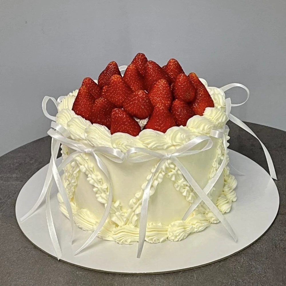 Торт для женщин #2842 с клубникой и бантиками, ламбет белый