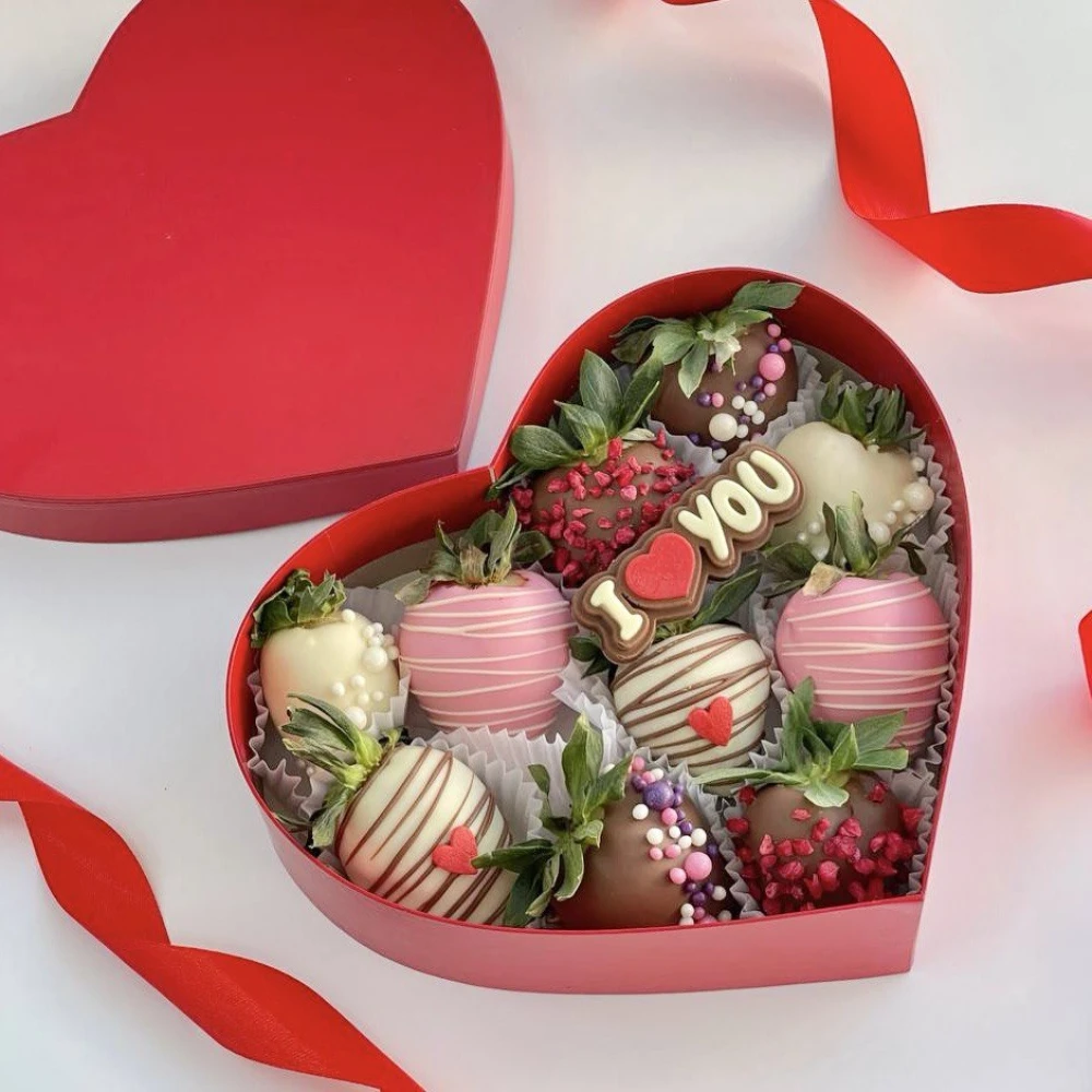 • Свежая клубника, молочный шоколад (белый ,тёмный)