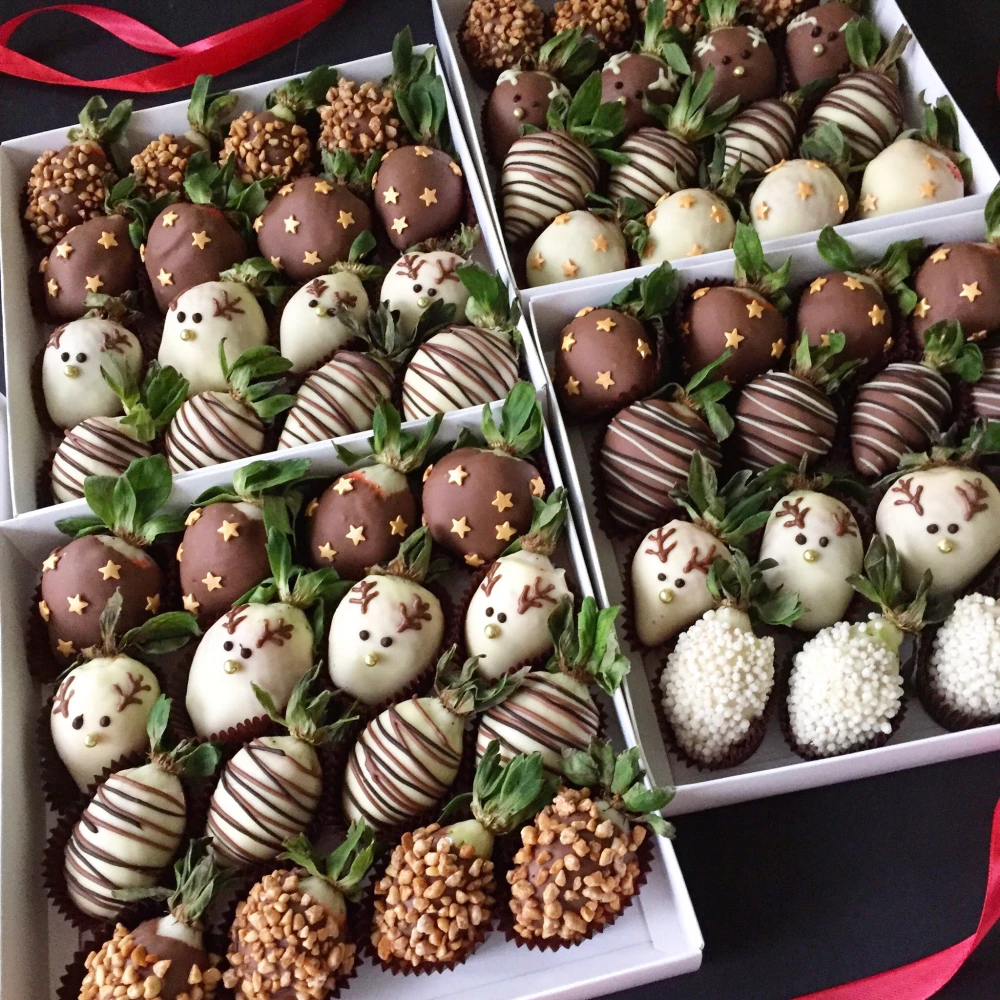• Свежая клубника, молочный шоколад (белый ,тёмный)