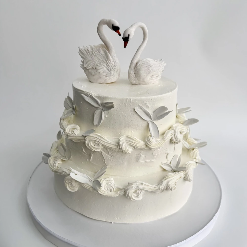 Торт свадебный #2945 с лебедями, белый
