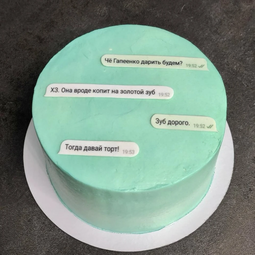 Бенто торт #2831 с перепиской из чата 700 г, бирюзовый