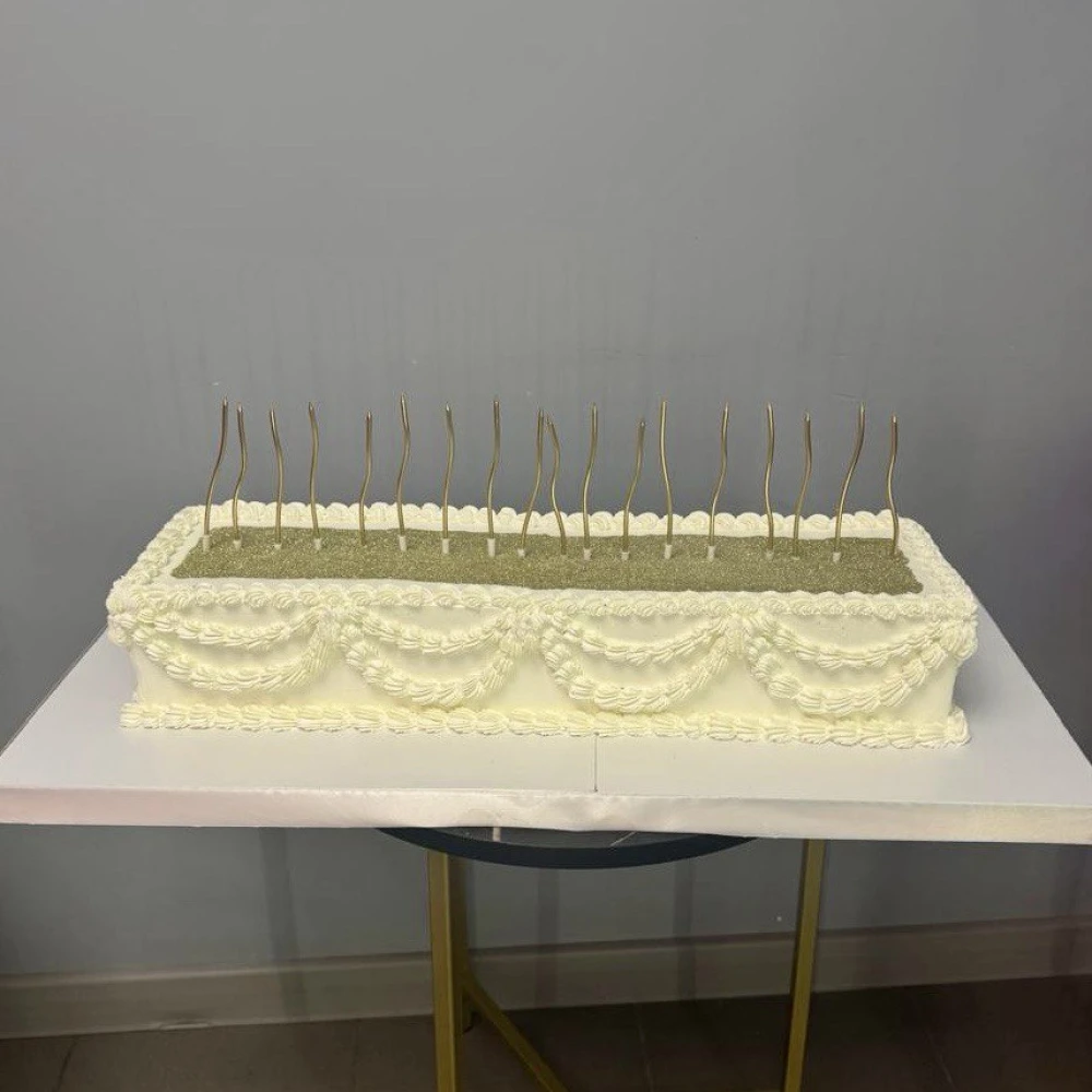 Торт свадебный #2811 длинный с блестками, ламбет белый