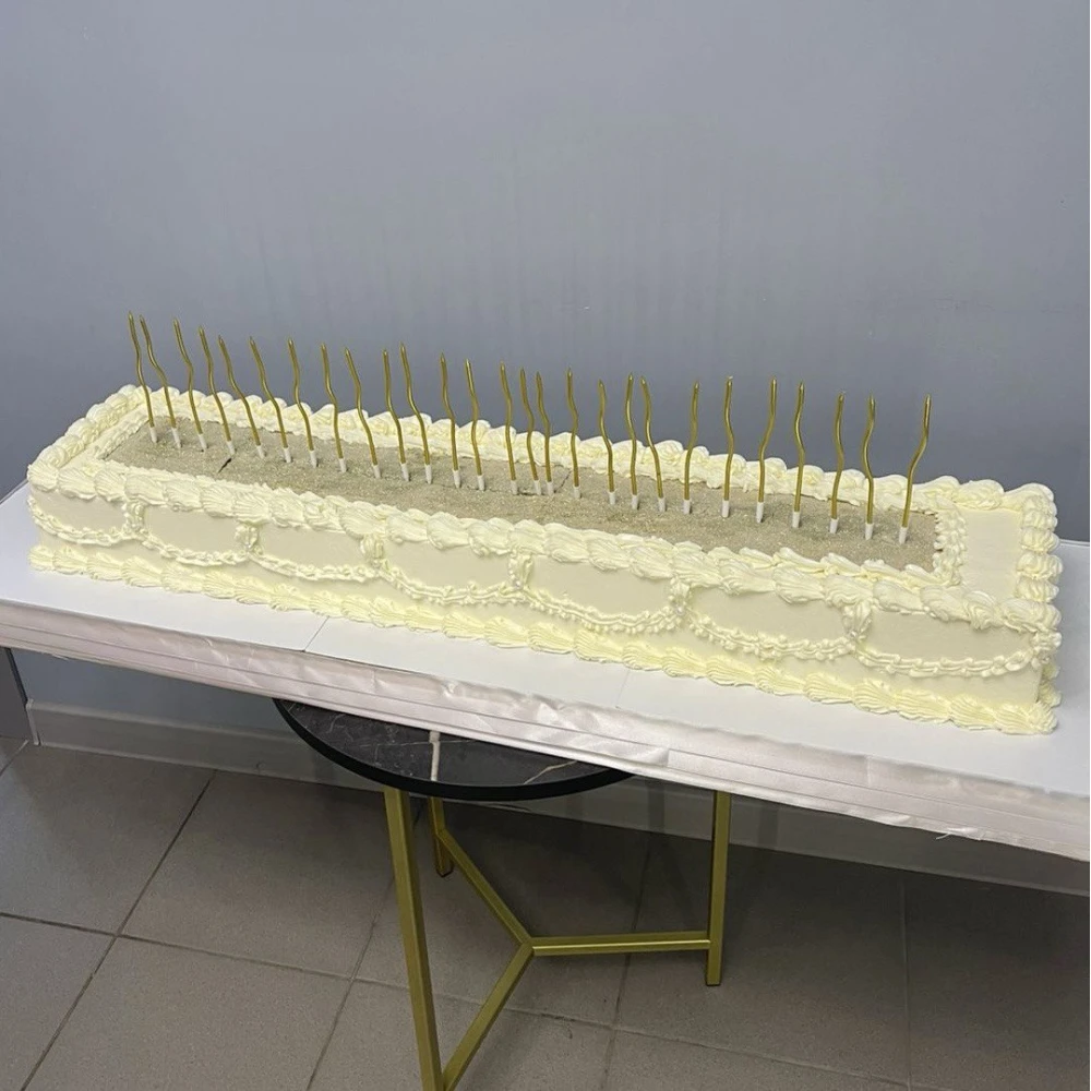 Торт свадебный #2816 длинный с блестками, ламбет белый